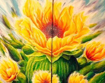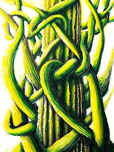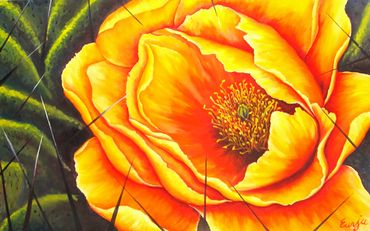 When I create my artworks, I always consider color and contrast. I use primitive vivid colors which are very vibrant reds, rich yellows, and strong blues in my paintings to show my emotions and energy. I paint with a defined contrast between light and shade to show strong contrast of the shape